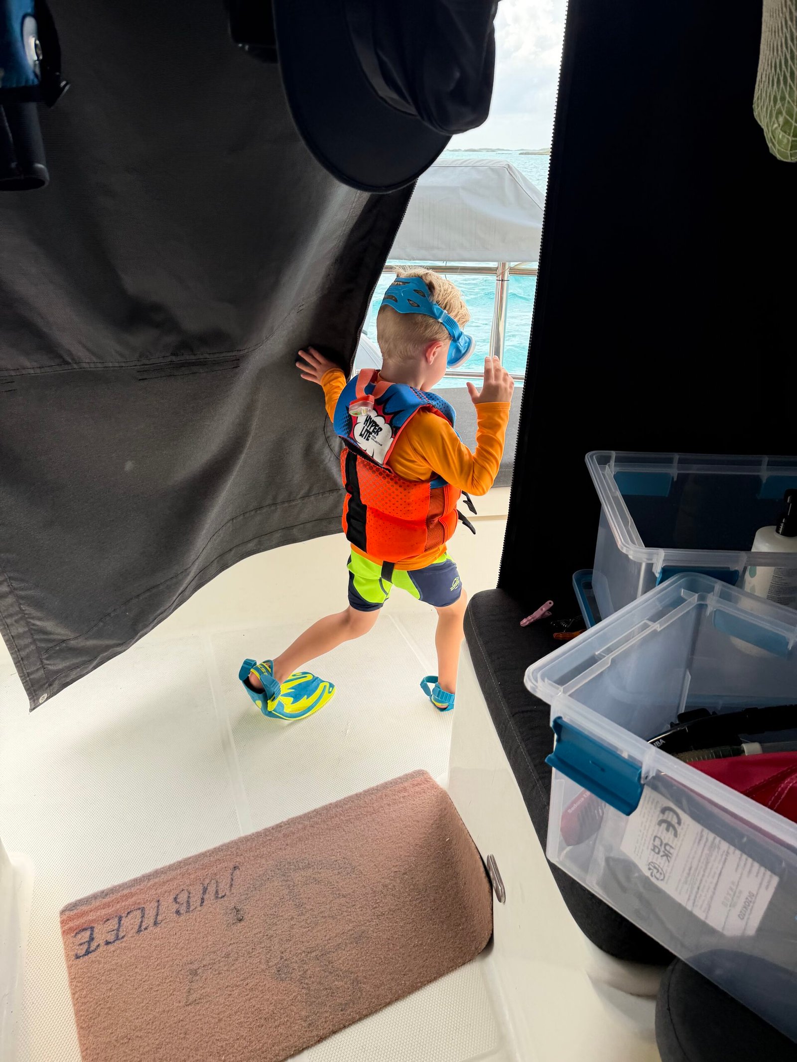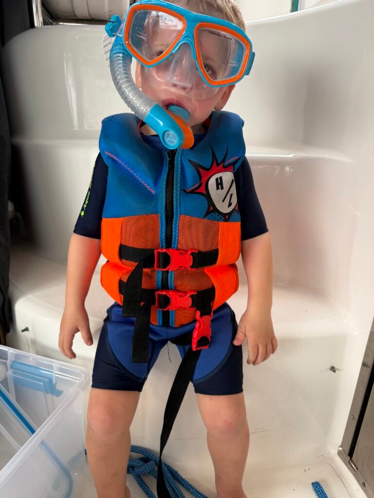 But the best part wasn’t the grotto at all—it was watching Declan, call sign Wave Rider, really come alive. Outfitted with fins, mask, snorkel, and life jacket, he was off, his head underwater the entire time as he kicked around the cave, soaking in every detail. Since then, Declan has been suiting up at every opportunity—jumping off the back of the boat, sprinting into the surf, or plunging off the paddleboard. Watching his confidence grow has been such a gift. It’s one of those moments where we can almost hear God whisper, “This is who I made him to be—curious, brave, and full of wonder.”