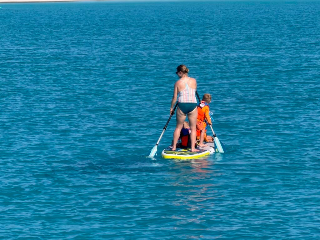 The following day we set up on Dog Beach, unpacking new sand toys and the paddleboard. The kids had a blast paddling around the shoreline—at least until Mom had to take the board back to the mothership to get bread proofing in the pans. As soon as she returned, the boys were back on the board again, full of energy and joy.